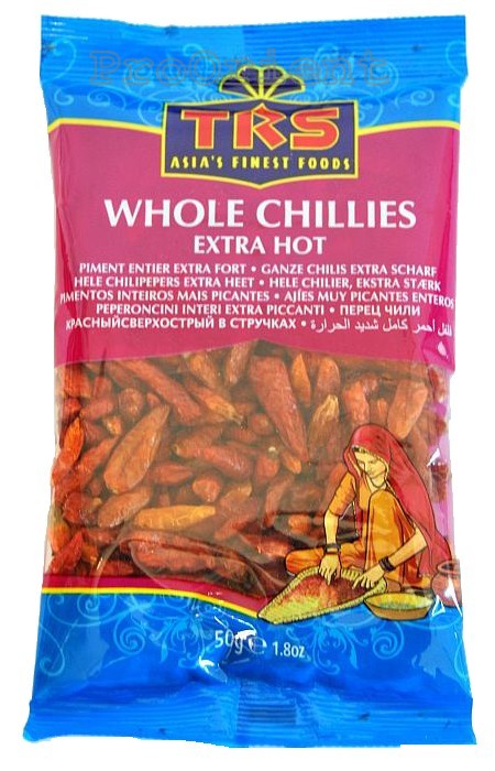 Opis: Papryczki chili znanej firmy TRS w opakowaniu 50g. Przyprawa pochodzenia azjatyckiego. Używana do ostrych potraw, zup, sosów oraz marynat. Można ją również zmielić w blenderze, aby powstał bardzo ostry proszek chilli. Ostra papryka ma wszechstronne zastosowanie, jest to niezbędny produkt każdego wielbiciela ostrego smaku.