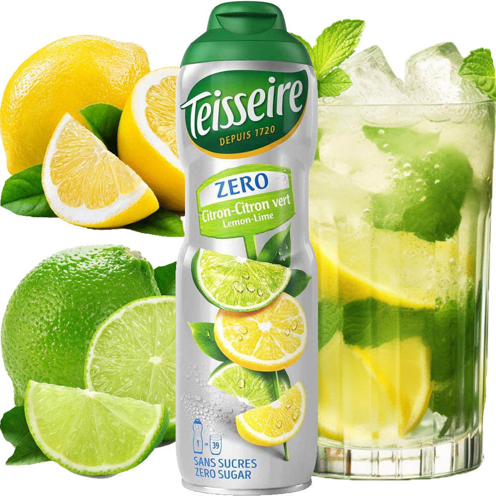 Syrop o smaku cytryny i limonki, przygotowany z alpejskiej wody, który charakteryzuje się niską kalorycznością. Dzięki specjalnemu opakowaniu doskonale sprawdza się w domowych warunkach. Każdy syrop jest zapakowany w aluminiowy bidon o pojemności 600 ml, wystarczającą na około 40 porcji. Produkcja i sprzedaż syropów marki Teisseire rozpoczęła się w 1927 roku, a od 1959 roku firma stała się liderem w Europie w dziedzinie syropów owocowych. Ich produkty, najpopularniejsze w całej Francji, są wytwarzane od 1971 roku w Crolles we Francji i oferują różnorodne smaki, od ziołowych po owocowe, zarówno z dodatkiem cukru, jak i bez. Zamykane w pięknych, metalowych bidonach, stanowią one wszechstronną propozycję dla miłośników różnorodnych aromatów.