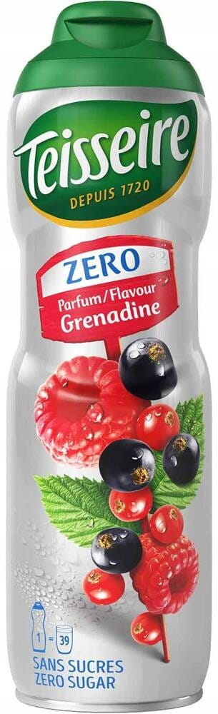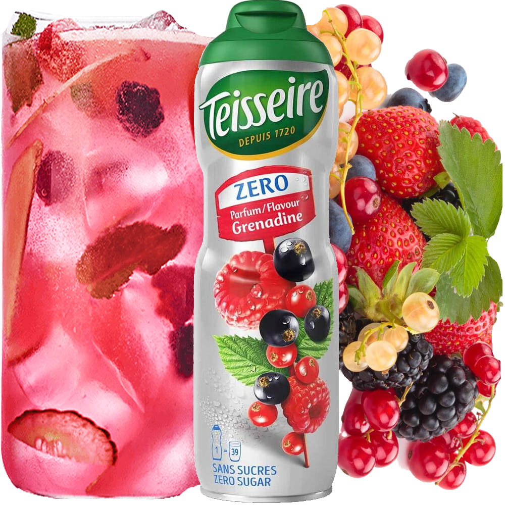 Syrop o smaku grenadyny, przygotowany z alpejskiej wody, który charakteryzuje się niską kalorycznością. Dzięki specjalnemu opakowaniu doskonale sprawdza się w domowych warunkach. Każdy syrop jest zapakowany w aluminiowy bidon o pojemności 600 ml, wystarczającą na około 40 porcji. Produkcja i sprzedaż syropów marki Teisseire rozpoczęła się w 1927 roku, a od 1959 roku firma stała się liderem w Europie w dziedzinie syropów owocowych. Ich produkty, najpopularniejsze w całej Francji, są wytwarzane od 1971 roku w Crolles we Francji i oferują różnorodne smaki, od ziołowych po owocowe, zarówno z dodatkiem cukru, jak i bez. Zamykane w pięknych, metalowych bidonach, stanowią one wszechstronną propozycję dla miłośników różnorodnych aromatów.