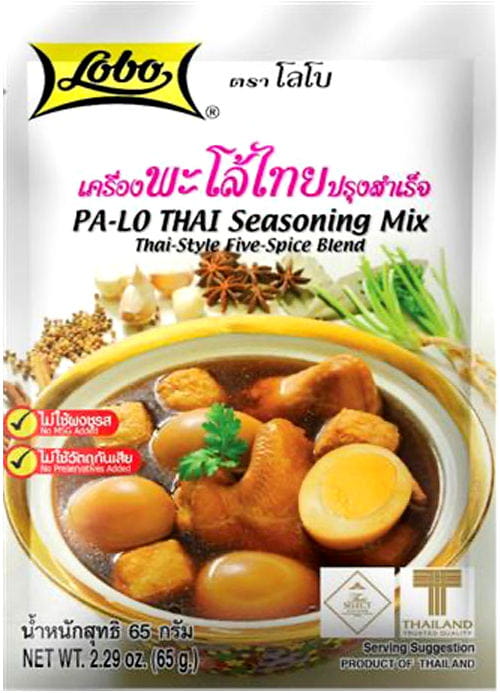 Opis: Tajska przyprawa 5 smaków do pa lo firmy Lobo w opakowaniu 65g. Różnie się nieco smakiem od tajskiej. Przyprawę wsypujemy do gotującej się wody, w proporcjach odpowiednich do ilości wody - musimy spróbować, czy smak jest odpowiedni, każdy powinien ocenić indywidualnie. Do potrawy możemy dodać ugotowanego kurczaka, wieprzowinę lub krewetki oraz inne składniki, tofu oraz jajko na twardo. Całość posypujemy kolendrą.