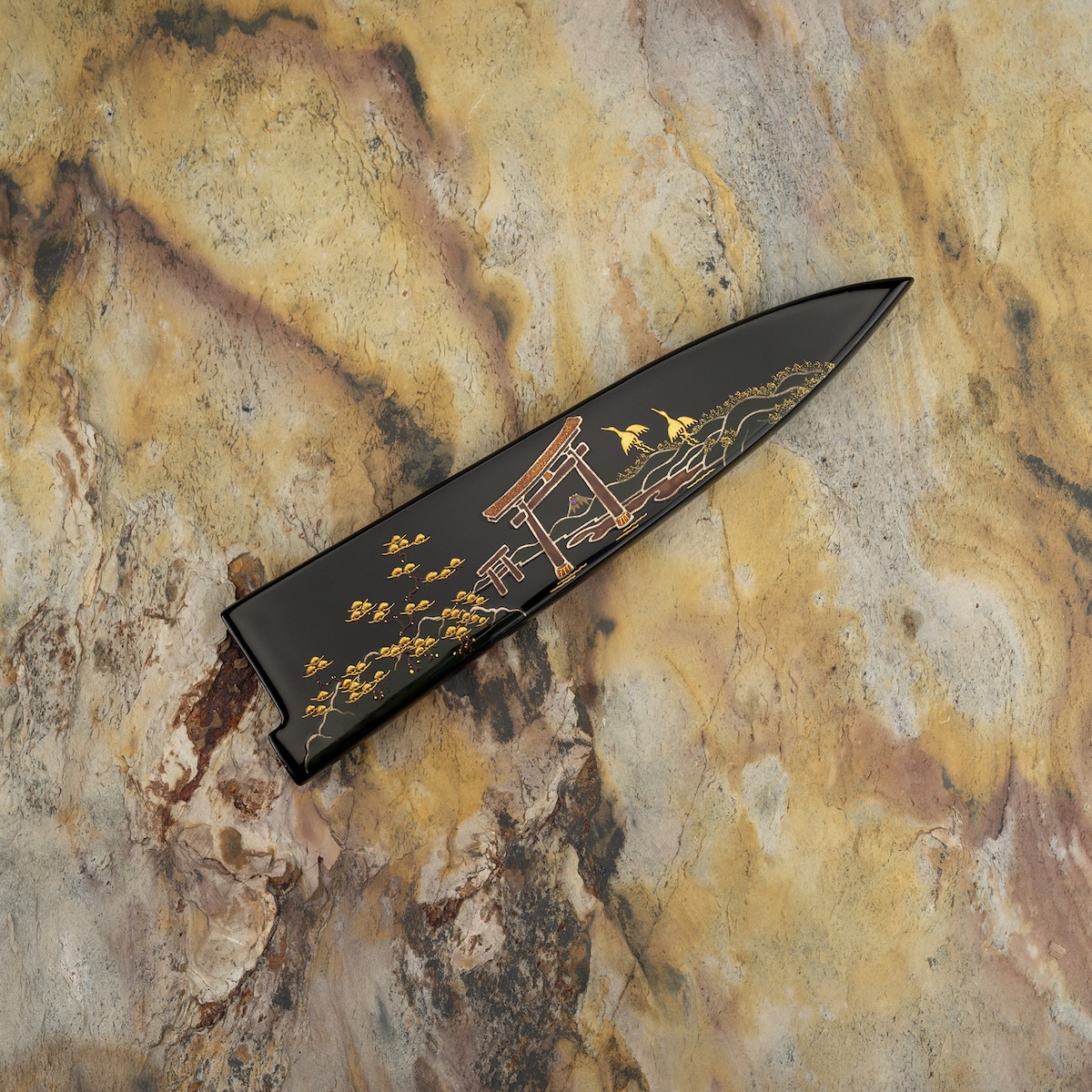 Seria Art Tori Fuji On Lake wyróżnia się subtelnym, artystycznym charakterem. Delikatny, falisty wzór na klindze w połączeniu z ręcznie malowaną sayą przedstawiającą motyw ptaka na tle góry Fuji i jeziora nadają nożowi unikatowy, kolekcjonerski wygląd. Każdy egzemplarz jest jedyny w swoim rodzaju, a drobne różnice w detalach wynikają z ręcznego procesu kucia, podkreślając autentyczność i mistrzowski kunszt wykonania.