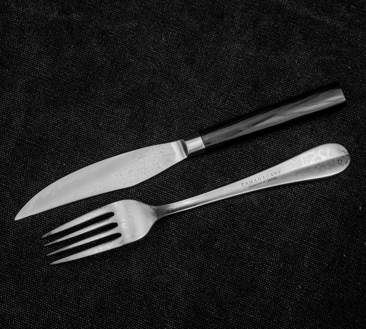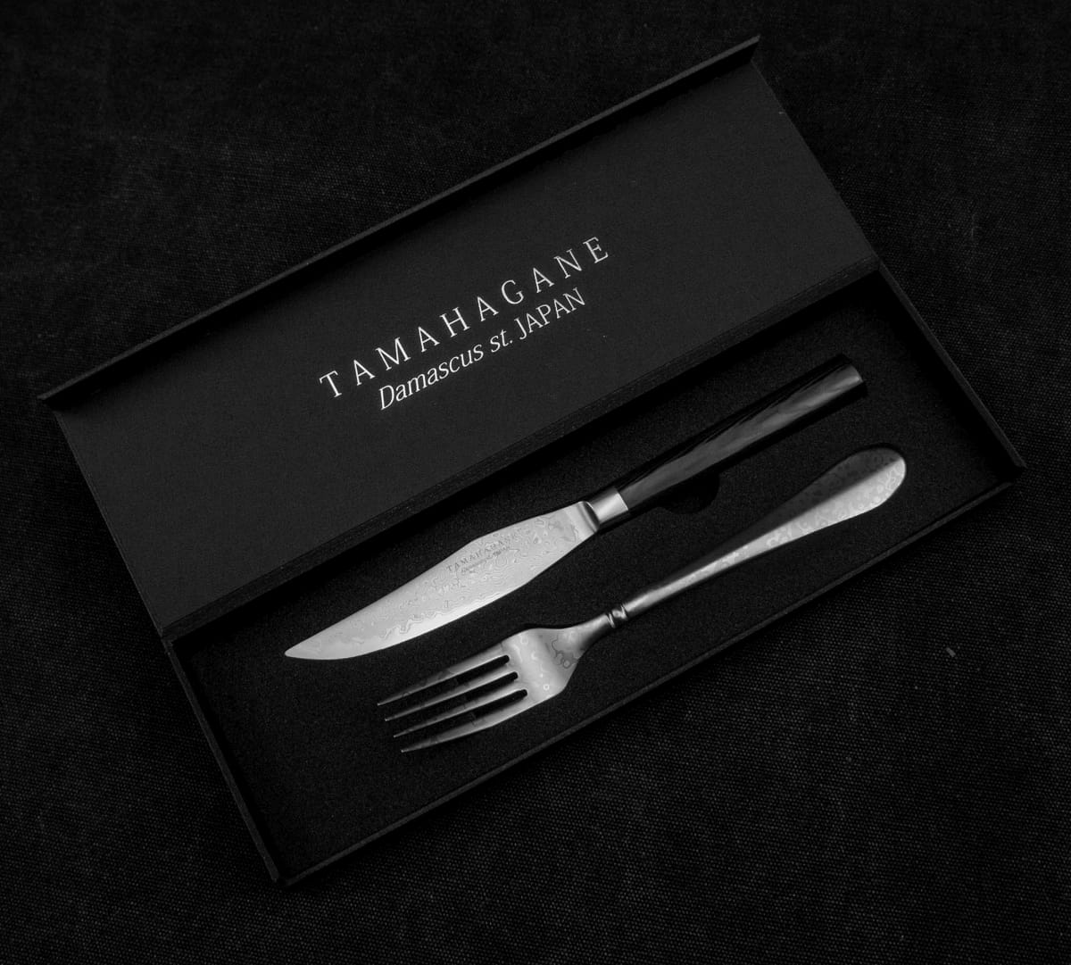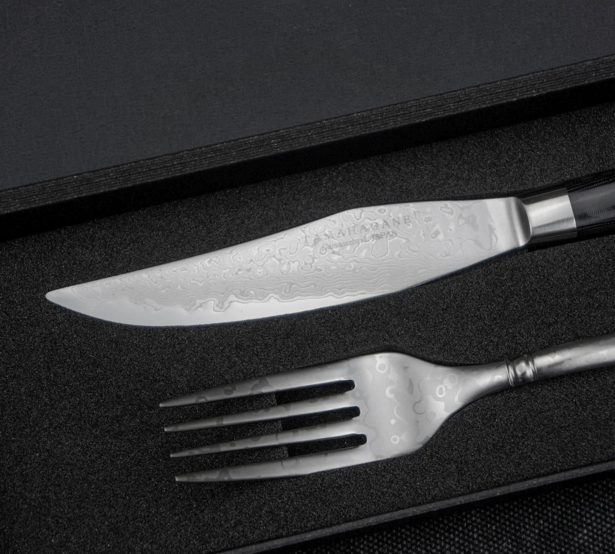 Tamahagane Micarta Japoński Zestaw Nóż i Widelec Do Steków KS004