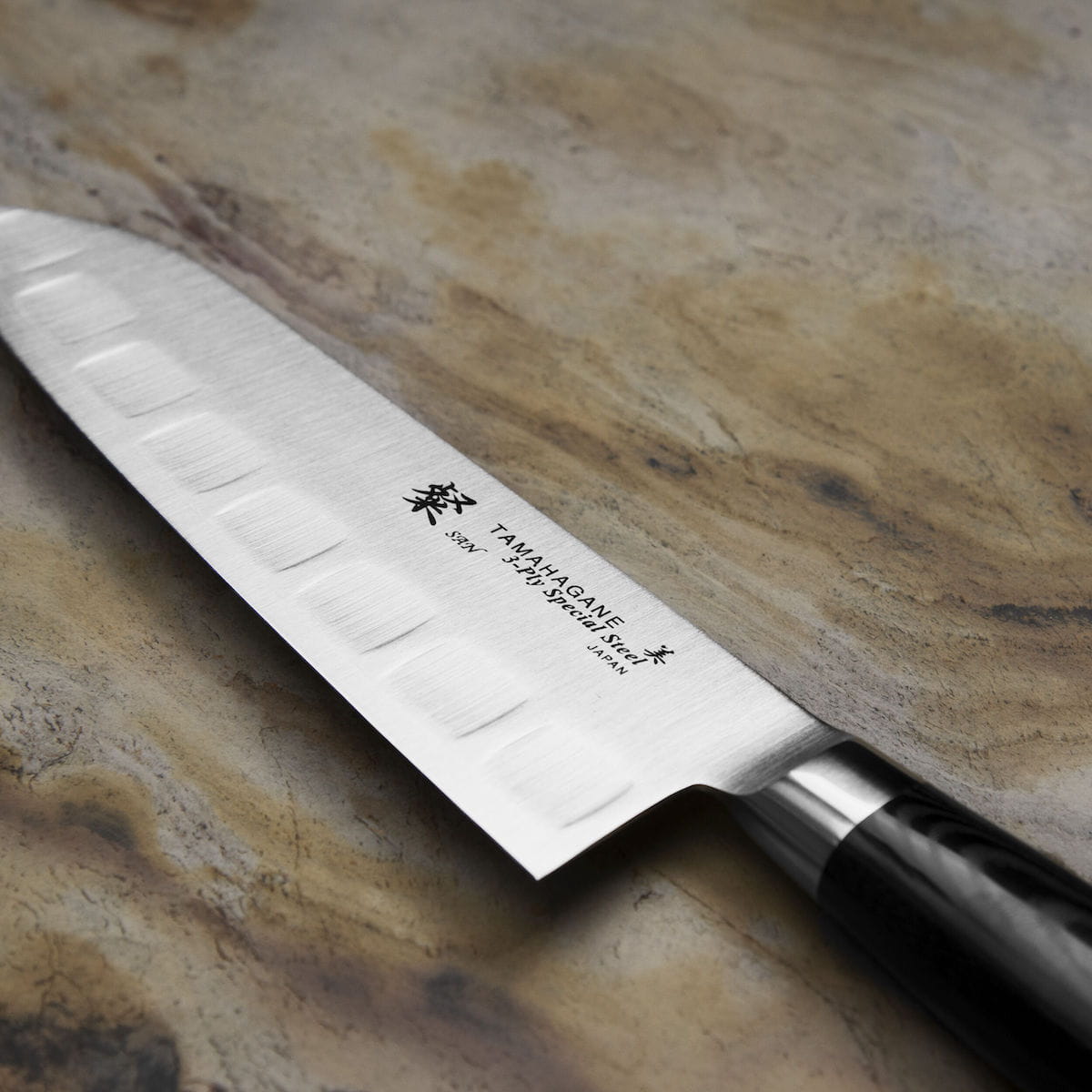 Tamahagane SAN Black VG-5 Japoński Nóż Santoku Żłobiony 17,5cm