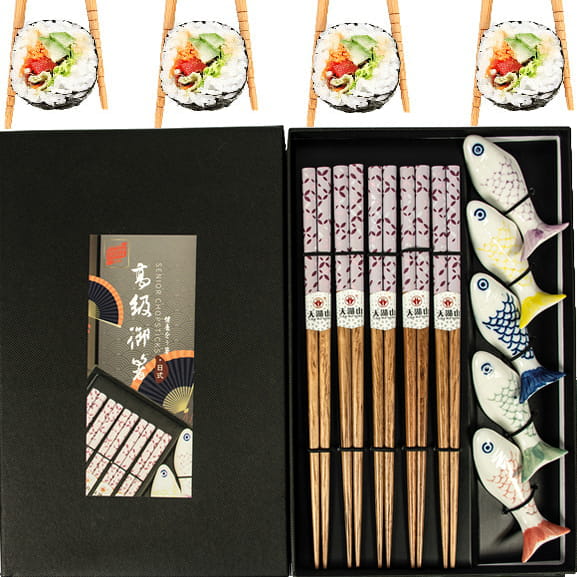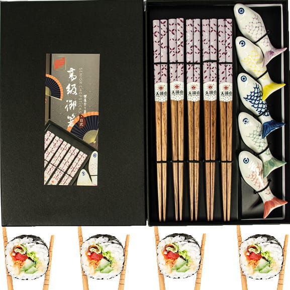 Zestaw Ciemnych Brązowych Pałeczek z Podstawką Rybki w Pudełku 5 Par GOLDEN TURTLE