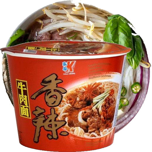 Składniki: Makaron: mąka pszenna, olej palmowy, modyfikowana skrobia z tapioki, sól, czosnek, regulatory kwasowości (węglan sodu, węglan potasu). Zestaw przypraw: sól, cukier, wzmacniacz smaku (glutaminian sodu), maltodekstryna (pszenica), aromat wołowy (3%) [glukoza, modyfikowana skrobia kukurydziana, ekstrakt drożdżowy, aminokwas, hydrolizowane białko roślinne (soja), cukier, przyprawy (czosnek) , pieprz, anyż gwiazdkowaty)], sos sojowy w proszku [soja, maltodekstryna (pszenica), barwnik (zwykły karmel), wzmacniacz smaku (guanylan disodu, inozynian disodu), sól], przyprawy (czosnek, anyż gwiaździsty, chili pieprz syczuański) , ekstrakt drożdżowy, proszek pomidorowy, barwnik (karmel amoniakalny), substancja przeciwzbrylająca (dwutlenek krzemu). Zestaw sosów: olej palmowy, pasta z mąki pszennej (mąka pszenna, sól, cukier, woda), przyprawy chili (chili, papryka syczuańska, pieprz), substancja konserwująca (sorbinian potasu). Pakiet suszonych warzyw: marchew, kapusta, groszek, chilli, kolendra.
