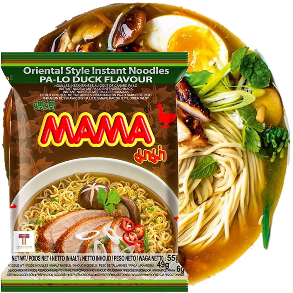 Opis: Tajska zupka z makaronem pszennym 55g firmy Mama to ostre danie o smaku i aromacie kaczki pa-lo. Posiada pożywny makaron pszenny oraz bulion w proszku.